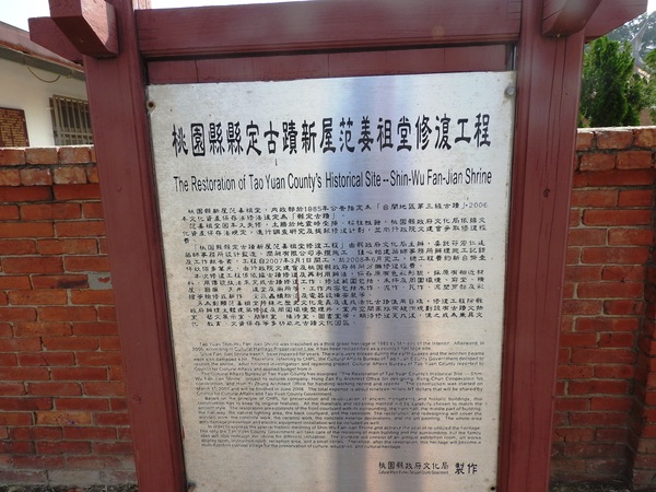 1736(乾隆元)年,文質二子范姜殿高隻身來臺,先到新屋鄉上庄子築屋暫居,再領四兄弟來臺墾拓,後來才遷到祖堂現址。