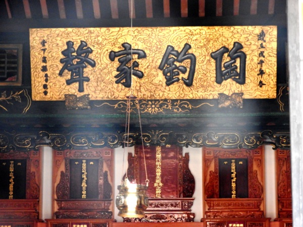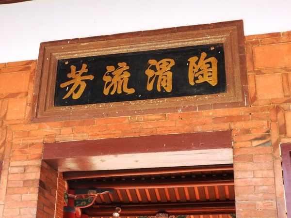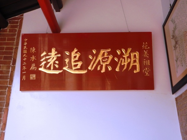 范姜祖堂的匾額有「陶渭流芳」、「陶渭流芳」、「陶渭高風」、「陶釣家聲」等,「陶」字為尊陶朱公范蠡為范氏祖先,「釣」、「渭」二字源自為姜太公離水三寸垂釣於渭水之上,尊姜太公為姜氏祖先。「陶」、「渭」表示其家族傳襲自春秋戰國時代越國的范蠡,同時也是周朝渭水姜太公之後,故自稱「陶渭」的後世。