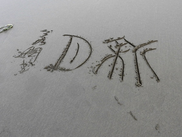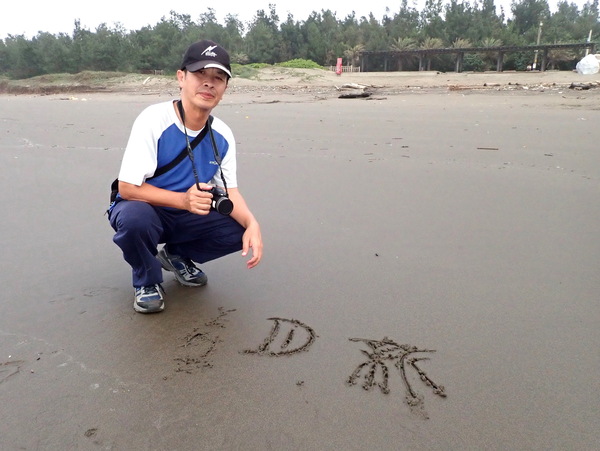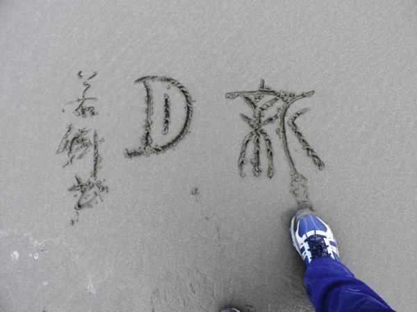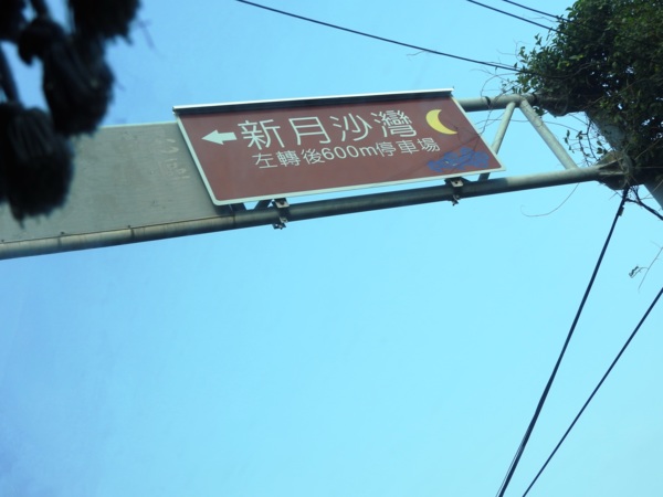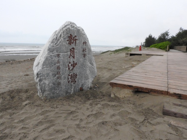 15:38 新月沙灣上篆寫"新月"二字留念