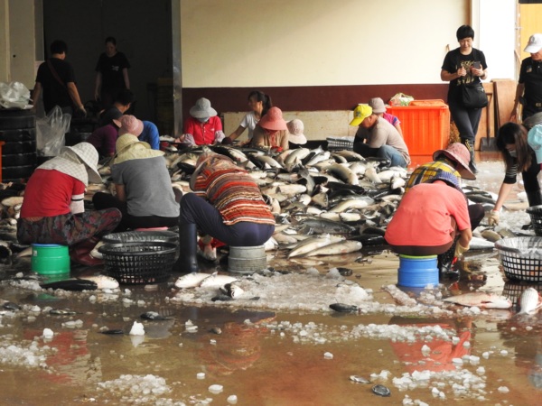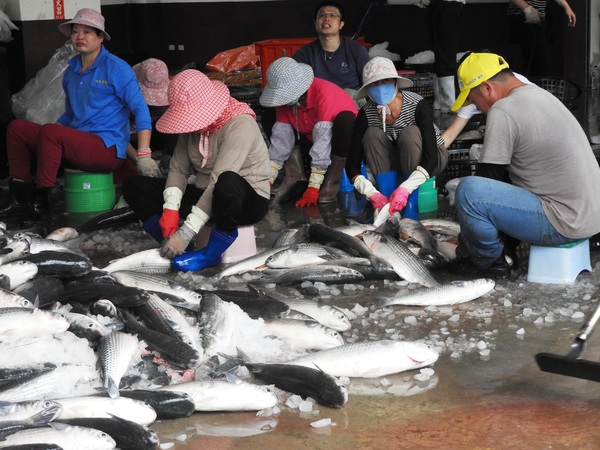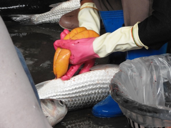 15:18 拔子窟烏魚養殖區福樂休閒漁村(竹北市魚貨處理場)看工人取烏魚子