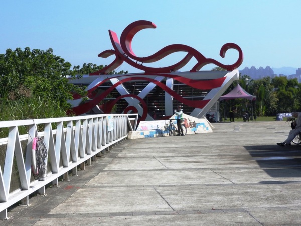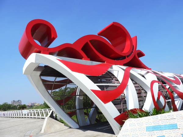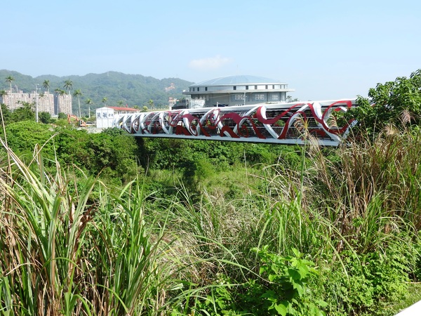 三鶯龍窯橋又稱三鶯景觀橋,跨越鶯歌溪,連結新北市與桃園市單車路網,於2013年啟用。仿鶯歌龍窯橋體為龍身造型,橋全長85公尺。