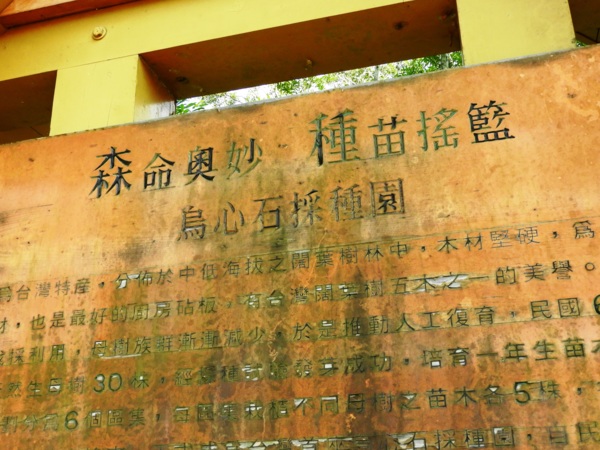 「烏心石」是中低海拔樹種,因材心堅硬如石,顏色很深而得名,常用於建材、家具、樂器或雕刻。以往林業繁榮時,遭大量砍伐,樹種大幅減少。