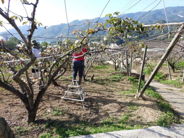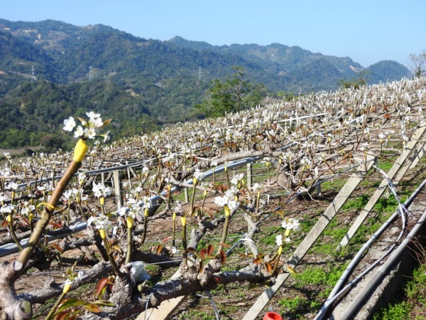 「擔送人夫戰死紀念」碑隱身在高接梨樹園中
