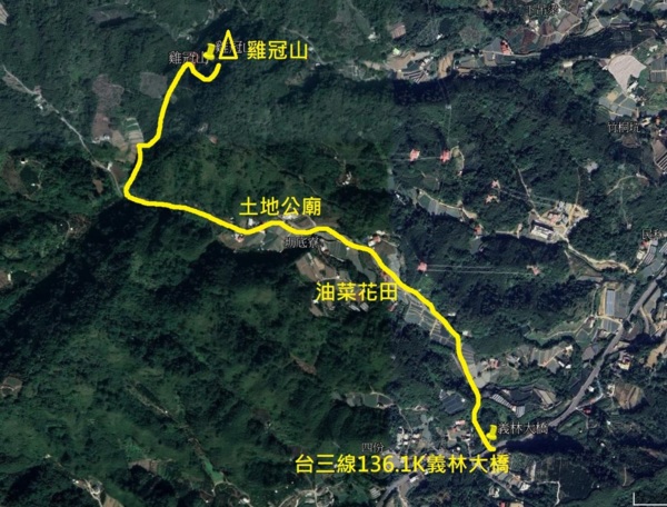 大湖雞冠山登山路線圖