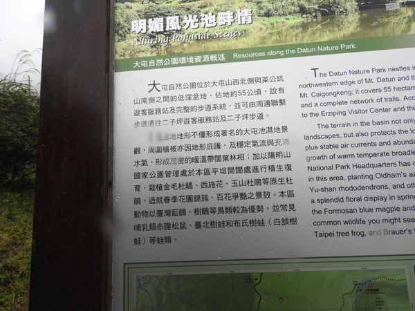 遊客中心下方大屯池乃山谷凹地積水成池,終年不凅,內有許多蛙族,在公園的天空也不時有鳥兒的身影出現。