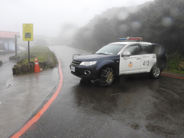 09:58 回二子坪站往大屯助航站方向的車道上行(車道有警車擋住,限制車輛進入)