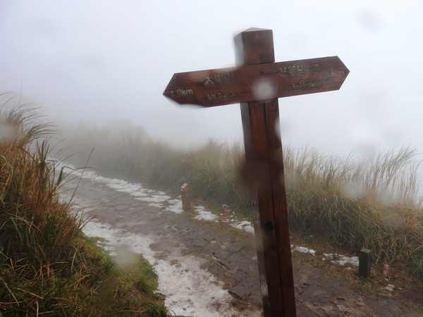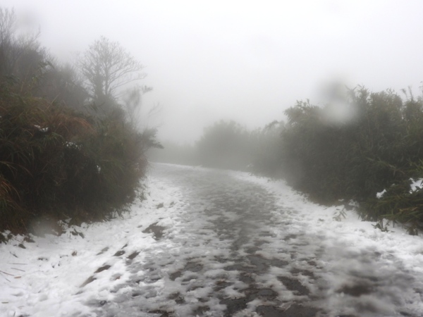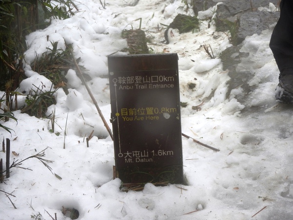 09:45 往上走到二子坪步道上,詢問旅人得知往大屯助航站方向才有殘雪