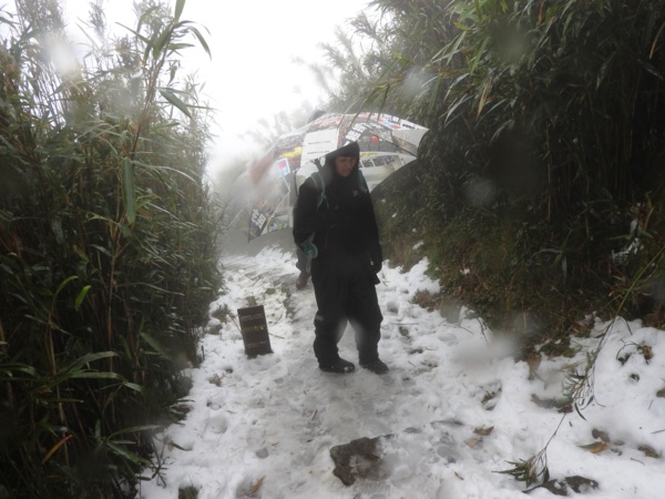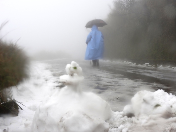 08:43 抵二子坪站下車 (淒風苦雨,不見雪蹤,前途茫茫)