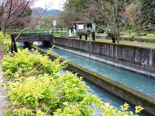位於龍潭鄉龍泉會館後方有個石門大圳櫻花隧道,於民國八十九年曾經整建,範圍是第一號渡槽終點到第一號暗渠起點,總花費經額是貳仟肆佰陸拾萬。 石門大圳的水從山頭穿過而出後,大圳的水流出之後,會經過一個渡槽,它是利用鋼筋水泥製成的,而在過水橋下方是龍潭著名的打鐵坑溪,大圳的水就是利用此橋穿過打鐵坑溪騰空而過。