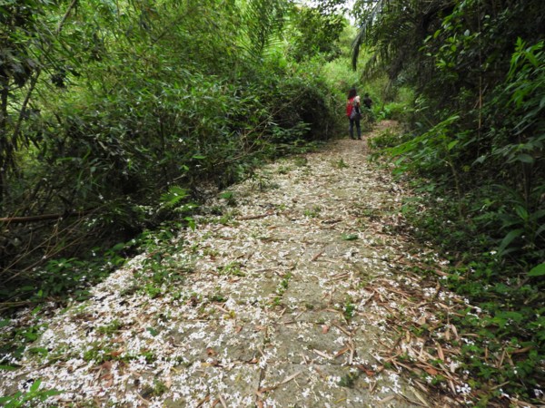 每到花季可見滿山谷一片雪白,桐花隨風飄落飛舞,白色落花鋪滿步道,十分夢幻,步道入口處有「夢幻桐花步道」大石,一旁題有「悠遊桐花迷夢幻,參拜觀音見如來」的木牌,賞景平台欣賞青翠山巒佈滿白花點點,步道終點至浮雲洞,人工手鑿的石洞內供奉著觀音聖像,洞前有顆粗大的老樟樹,是由妙機法師親手栽植,樹齡已近百歲,步道輕鬆易行,景色優美夢幻,適合全家悠遊賞景的休閒步道。