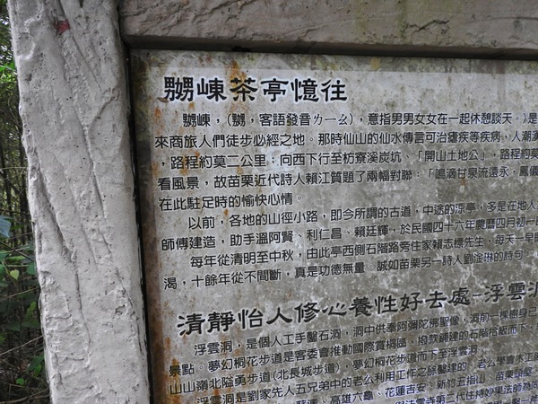 嬲崠茶亭的「嬲」,客家話發音「ㄌ|ㄠˋ」或「ㄌ|ㄠ」,是指男男女女坐著休息聊天談的意思。 這就是民國46年(1957)當地居民所建造的茶亭,取名為「嬲崠茶亭」,供往來民眾歇腳。