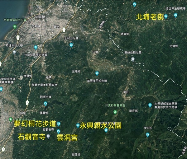 頭屋景點路線圖 (頭屋夢幻桐花步道 - 北隘勇古道步行)