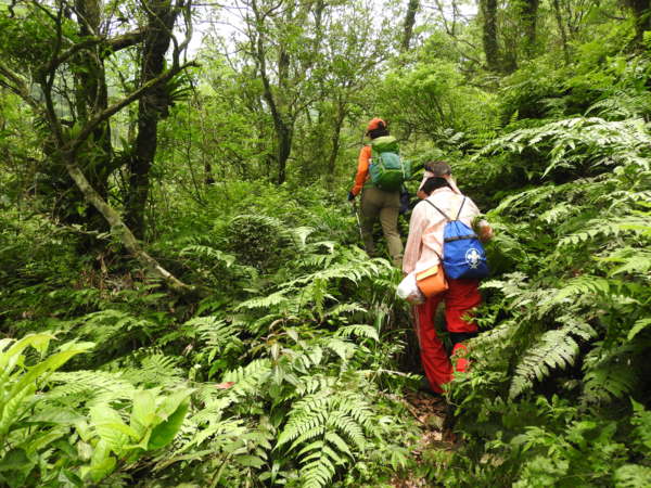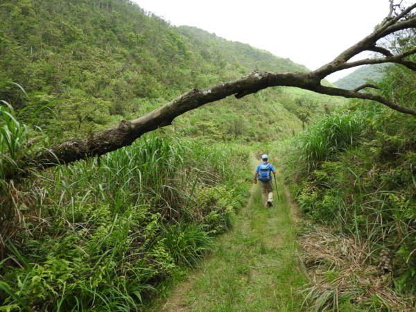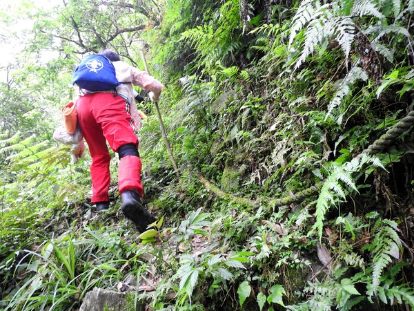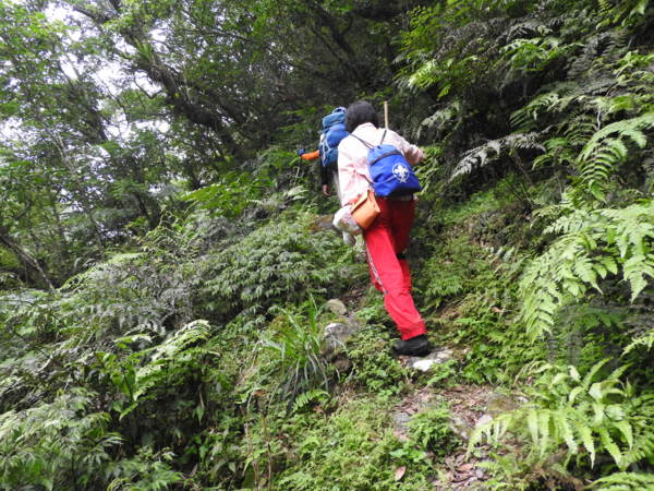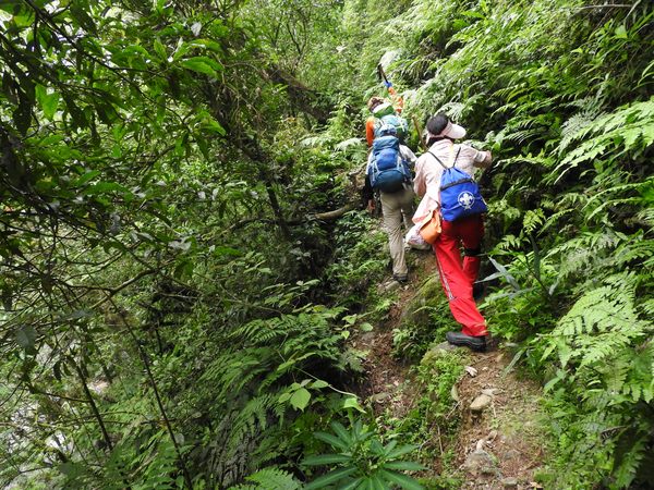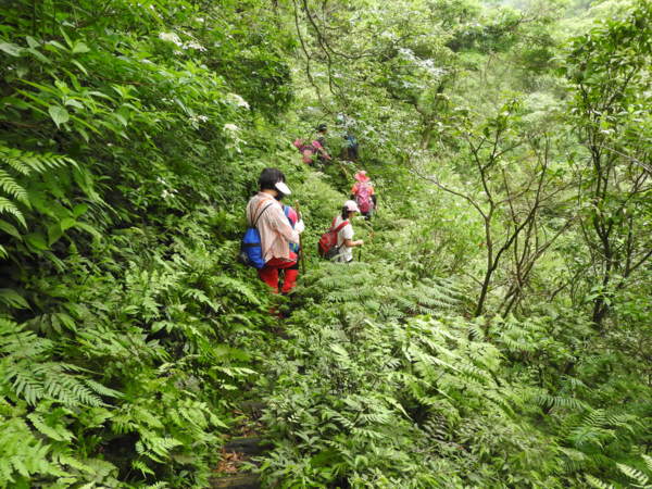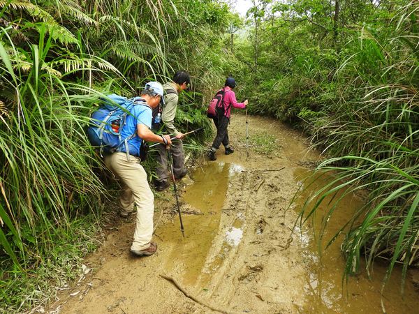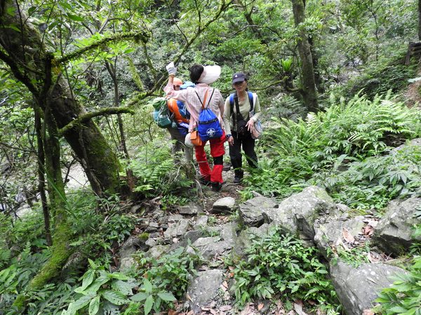10:45 桶后越嶺步道6K處(豎立步道因災害中斷,禁止通行告示) 開始往下走