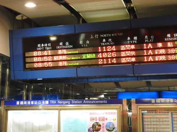 08:52 南港火車站第一月台搭上區間快車往瑞芳