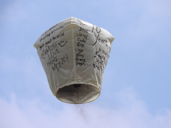 13:35 題寫天燈「願與天心共映潔」