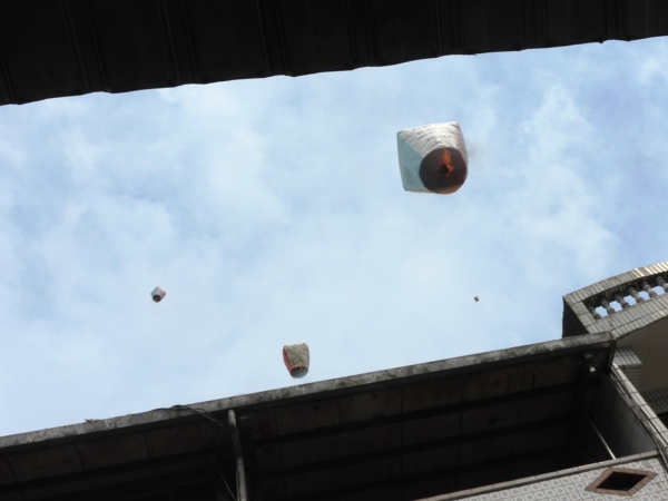 14:03 施放天燈,天燈墜入老街民宅