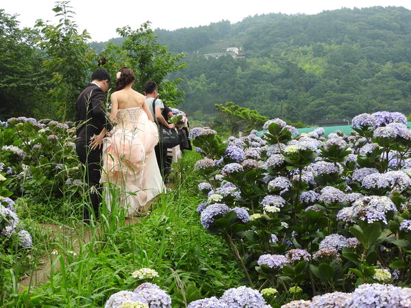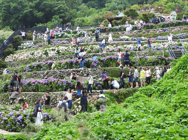 10:54 大梯田下方拍「大梯田繡球花園」,見賞花人馬雜沓,決定轉戰其他繡球花園