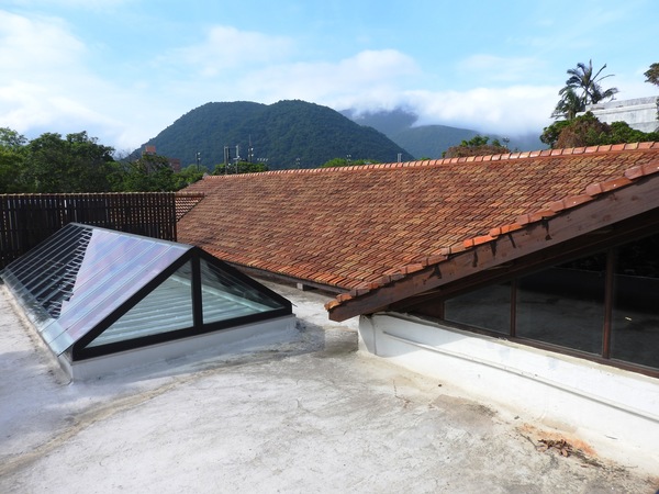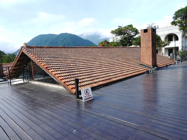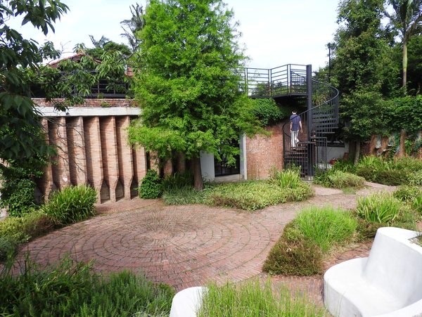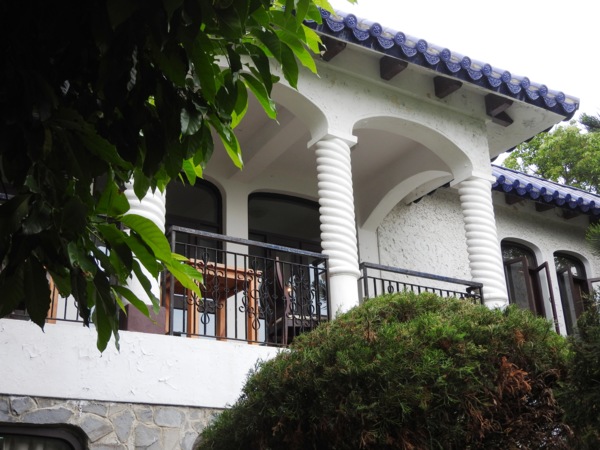 建築體現中西文化的融合,整體是以中國四合院布局,東方特色的建築元素如藍色的琉璃瓦及窗櫺,而西方元素則如西班牙式白牆及螺旋柱等。