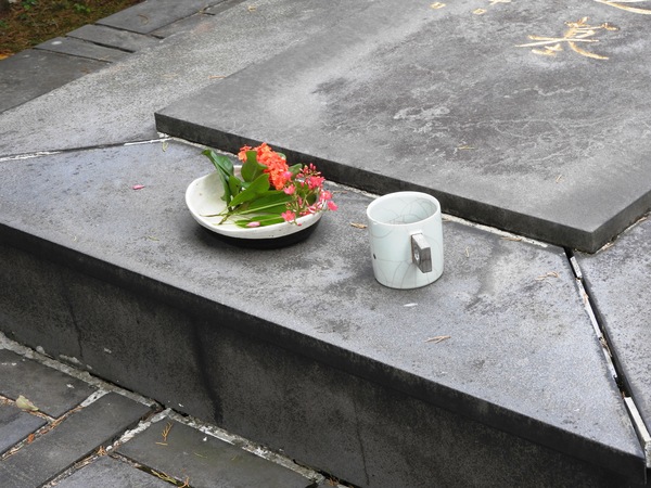 林語堂先生生前愛喝咖啡,故居員工平日常在墓前為他放一杯咖啡