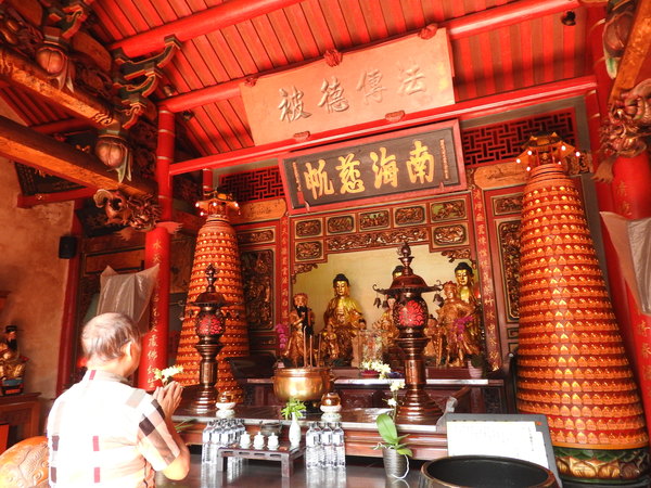 寺內主祀「釋迦如來佛」、「觀世音普薩」、「普賢菩薩」為三寶佛,代表「佛、法、僧」為三寶,亦稱為三尊或稱為三聖,也是台灣最先供奉三寶佛的寺廟。寺內供奉『釋迦牟尼』、『南海觀世音』、『註生娘娘』等神佛,其中『註生娘娘』是全台灣最古老的軟骨金身,據當地居民傳說許多信眾來此要求生男或生女非常靈驗。外圍有護牆圍繞在四周,寺內有許多的古匾、古聯,正殿懸有「慈雲廣被」、「南海慈航」兩塊乾隆、道光年間古匾,寺內雕樑畫棟、古色古香,頗發思古之幽情。