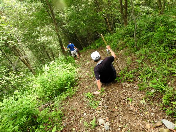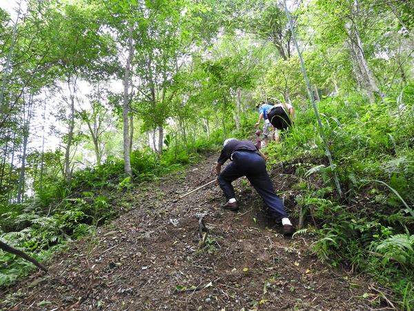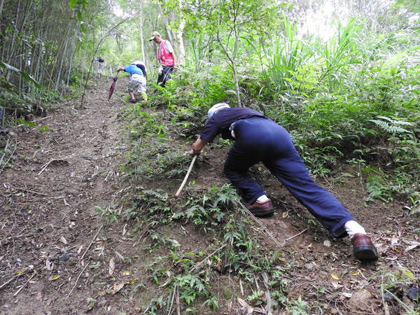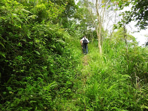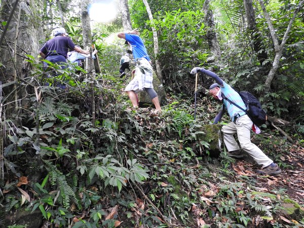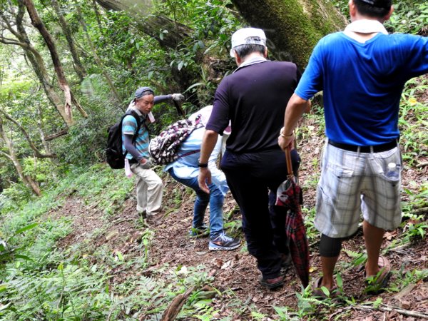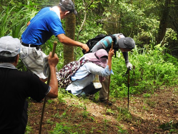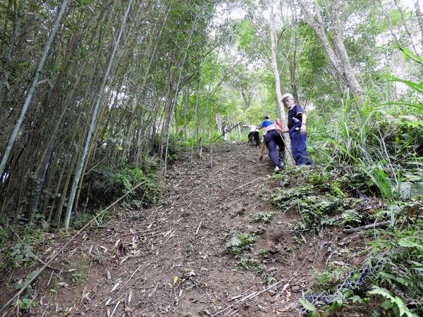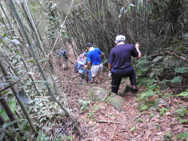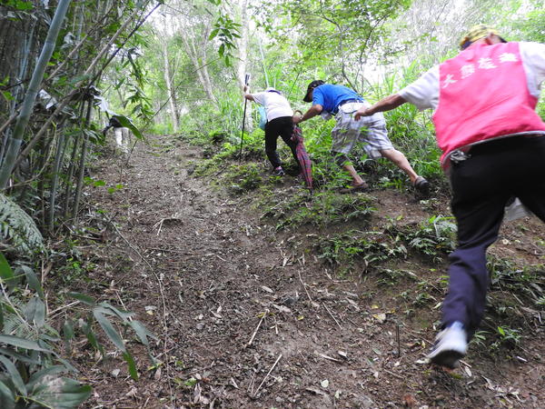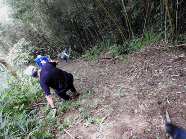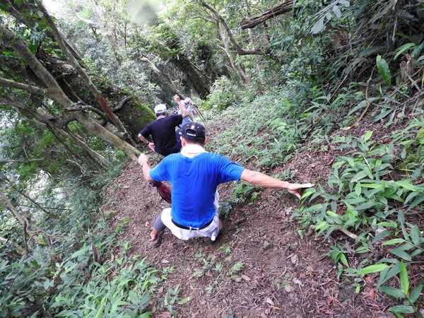 10:05 遇又陡又滑泥石路,領隊想從旁腰繞