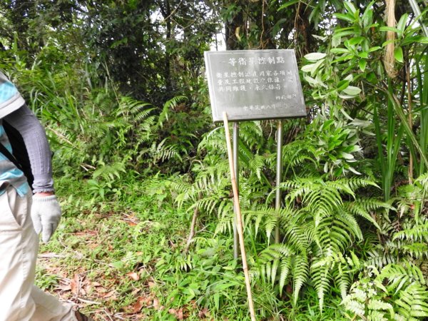 10:44 連領隊共8員山友抵枕頭山山頂(枕頭山舊名「角板山」,海拔標高631公尺,有一顆No.4185三等三角點基石)