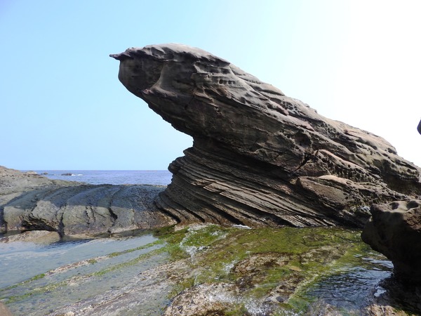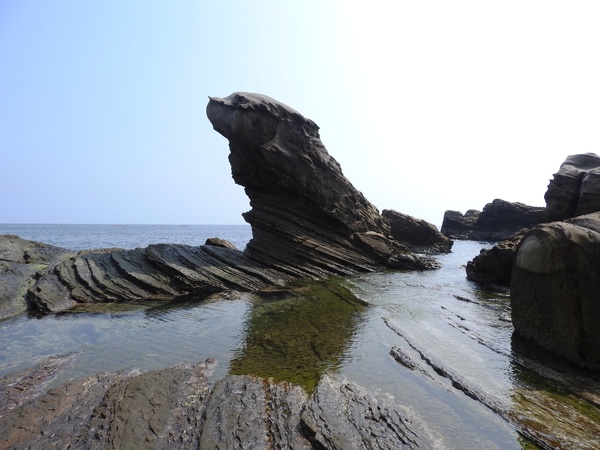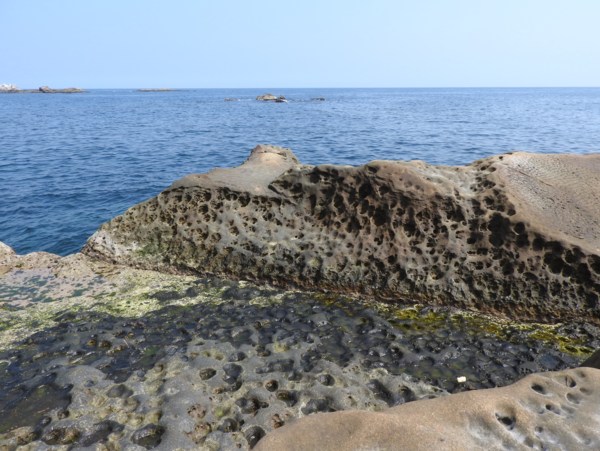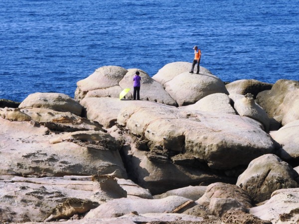 15:22 濱海公路79.1 K停車場(陰陽海附近)下車看威遠廟水準點與麵包石(沒力氣再走了,只好透過望遠鏡頭遠觀)