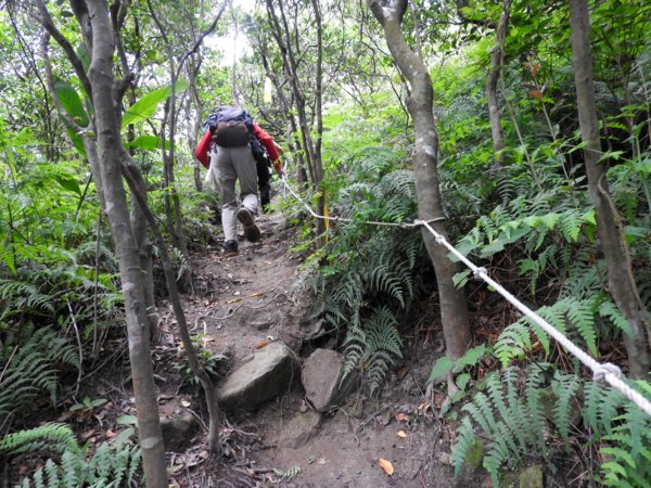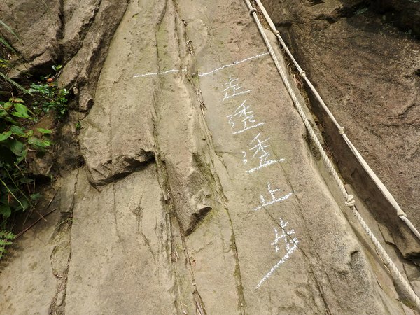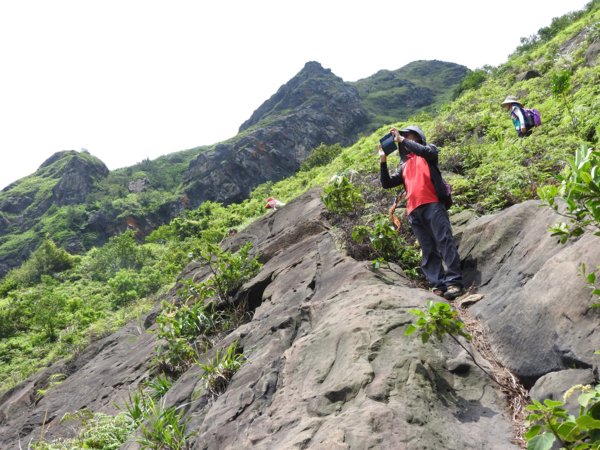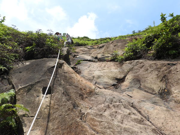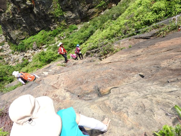 11:05 大石壁有繩可上攀往劍龍稜及小錐麓水管路(太陡危險,今天不走此路)