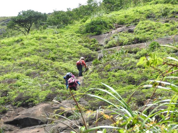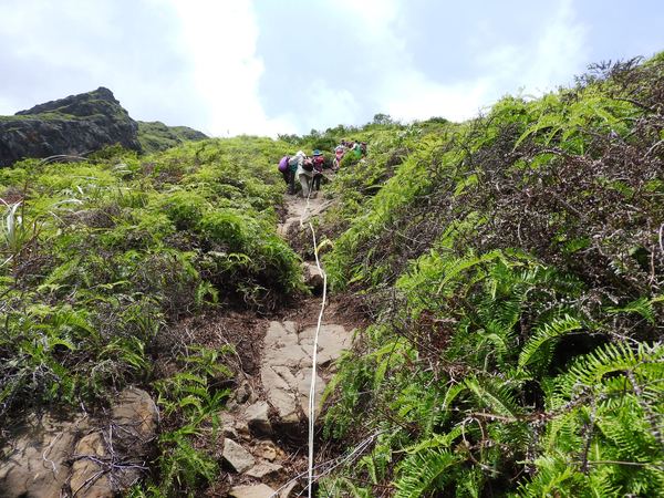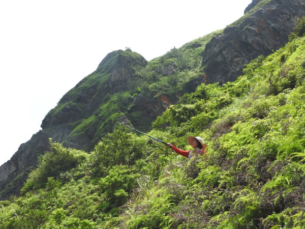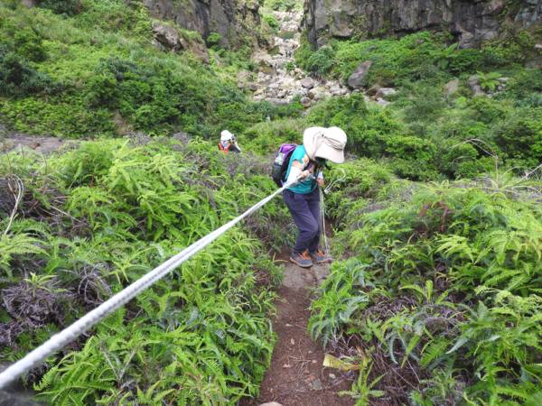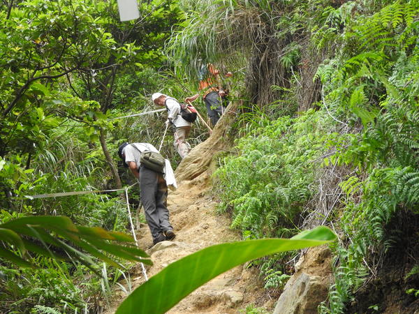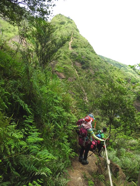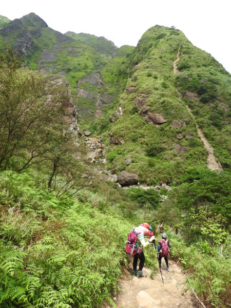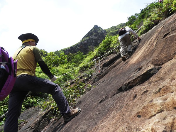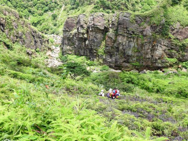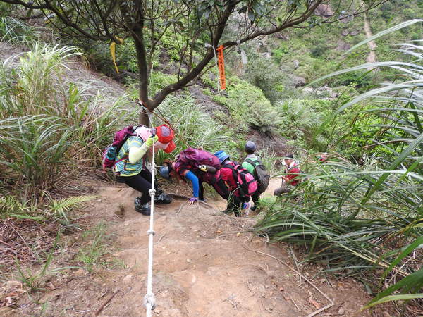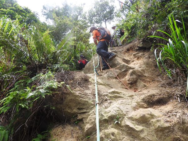 大石壁太陡危險,登山隊取左