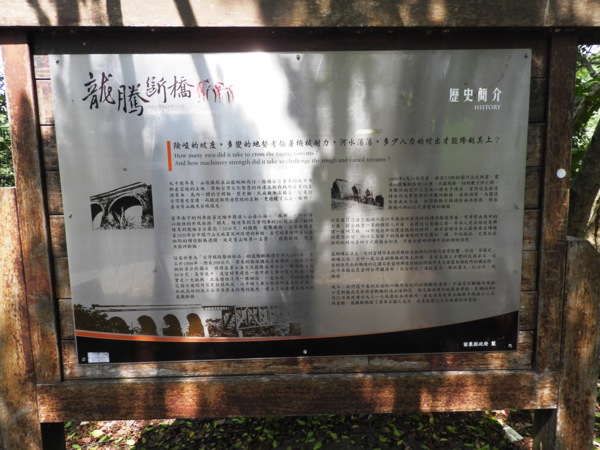 西元1999年9月21日再度遭受九二一大地震的無情摧殘,由北端算起第四橋墩半殘拱口二次被震斷,龍騰斷橋除了深具古樸之美外,也是經歷二次大地震的活見證。