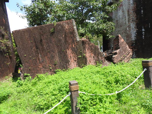 魚藤坪斷橋北端第四號橋墩上半部於921大地震時震落