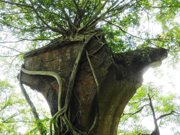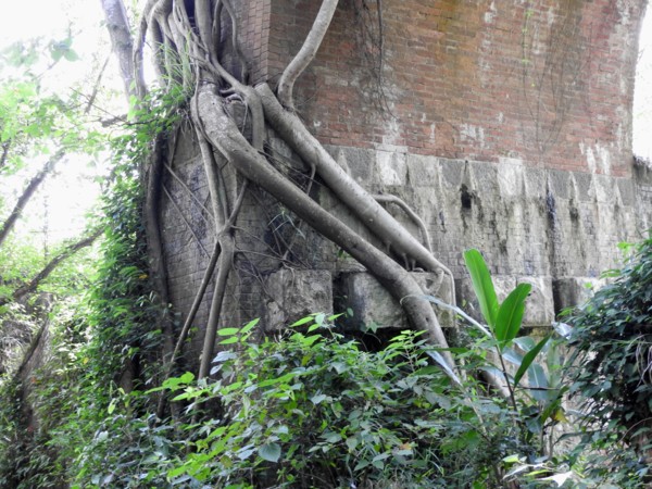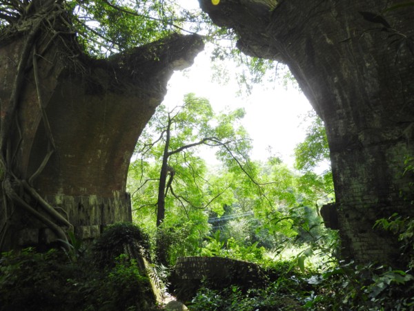 10:08 走鐵橋過龍騰溪抵橋墩已被老榕盤根錯節包圍的龍騰斷橋南段