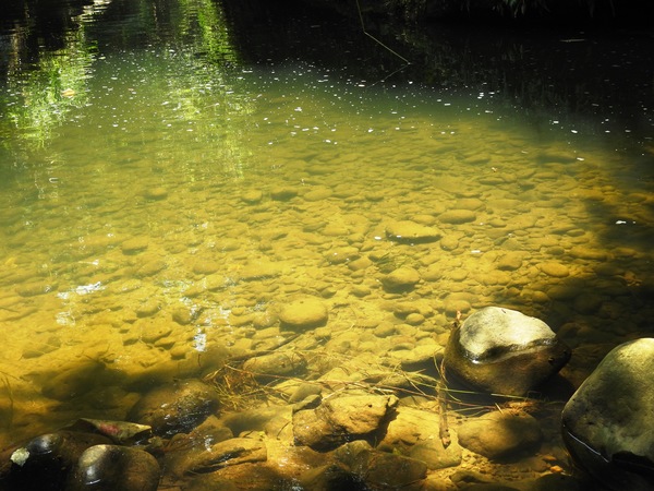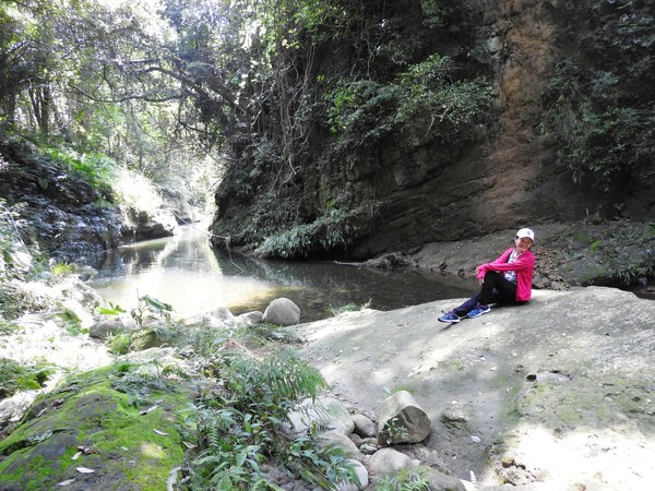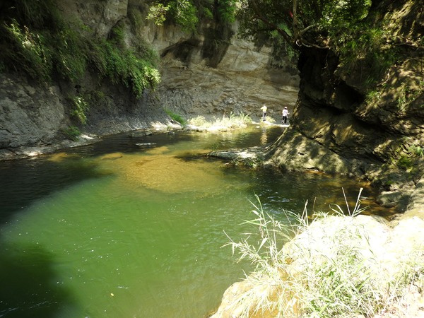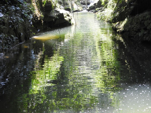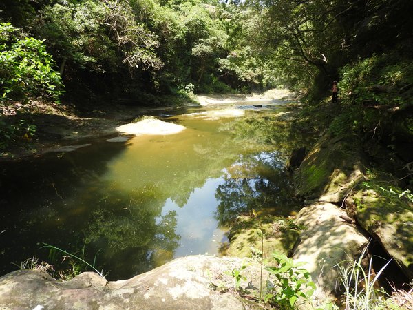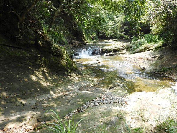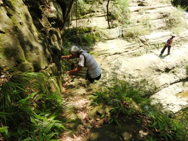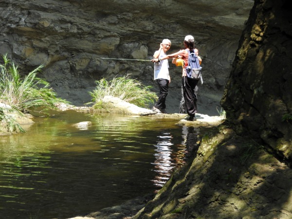11:11 往下游走,水邊沒路了,卻看到領隊在隔溪的峽谷中