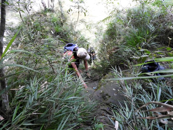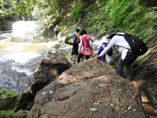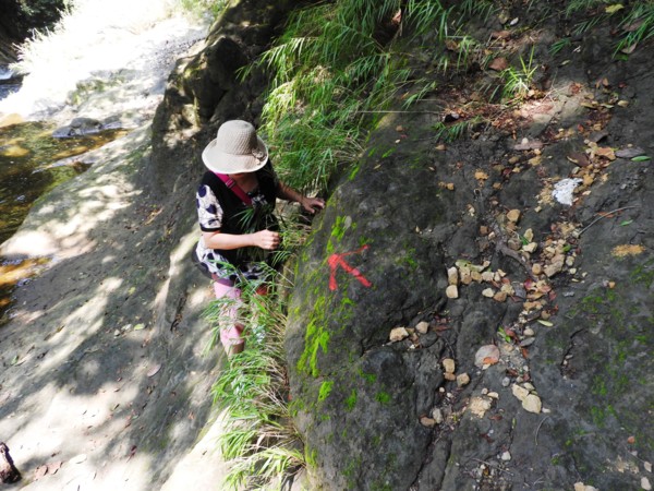 11:17 攀上高處,此時領隊已回頭,遂作罷再往前進(後查網路得知再往下游走過危橋,回頭即可看到水載下瀑布主瀑)