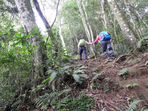 路面狀況:原始山徑,偶攀爬岩壁、木梯