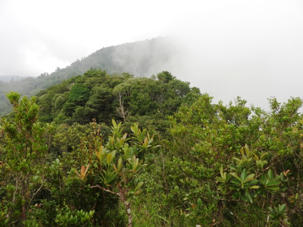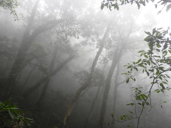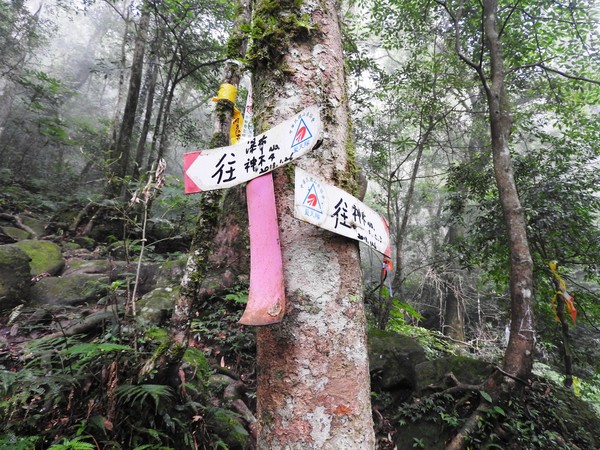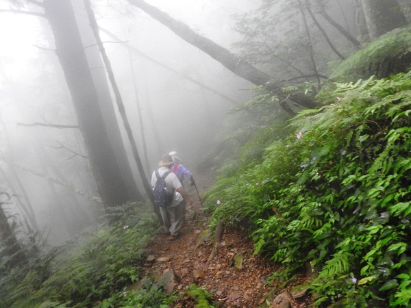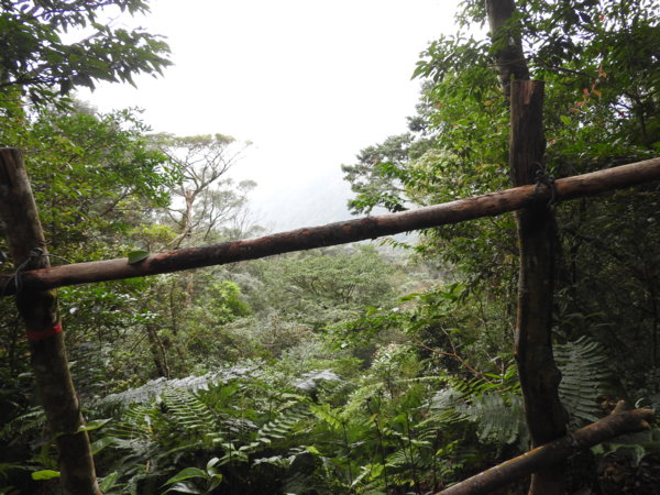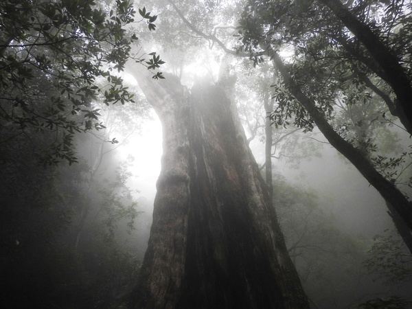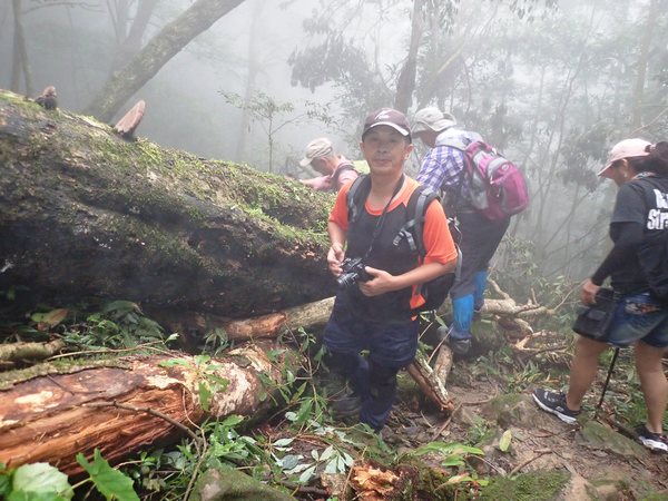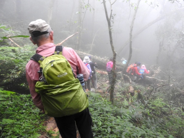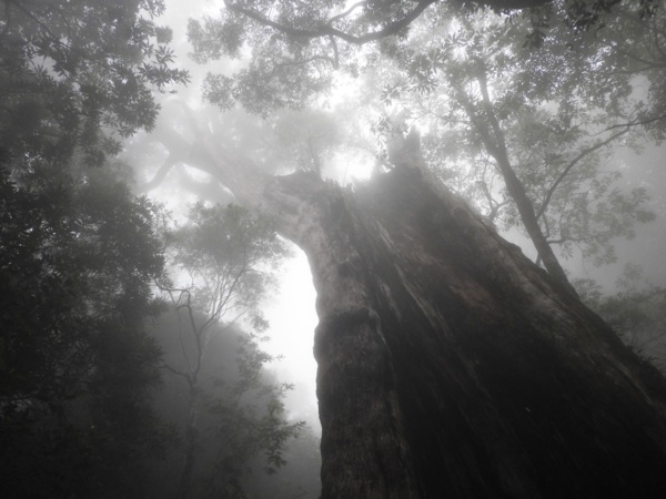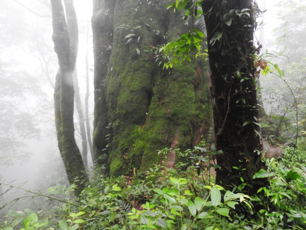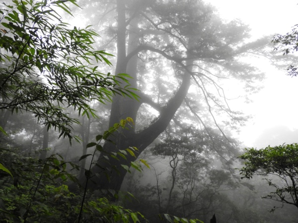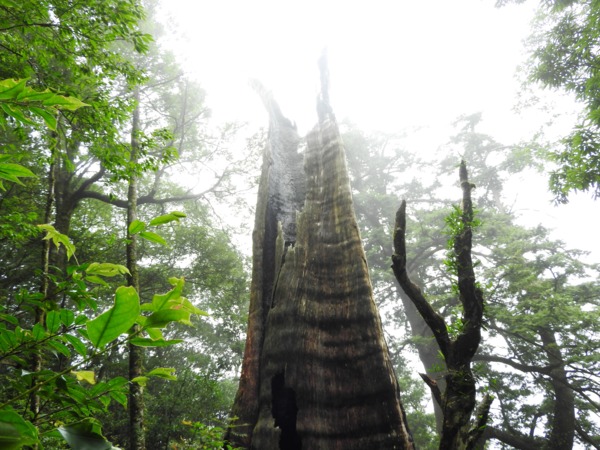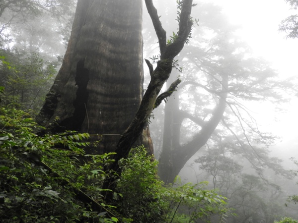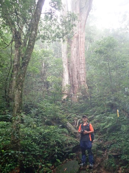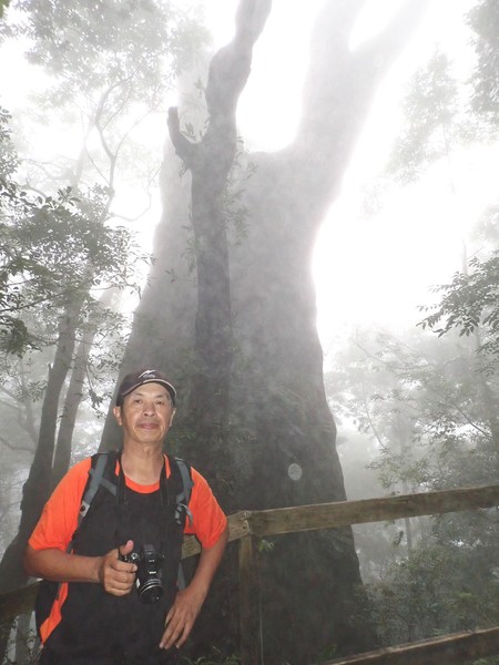 13:41 回頭到3號巨木旁木梯上才看到薄霧中的4號巨木(阿扁神木),造訪過四棵巨木後開始回程下山