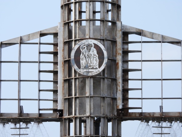 作品以飛機形體為表現的起點,結合桃園的陂塘與機場兩大地理與人文特色,將此一巨大高聳的飛機矗立在陂塘的水面之上,運用不鏽鋼為主要材質,以經緯交織的透空形式建構飛機主體,其格狀的構成模式如同數位化3D結構,呼應位處陂塘水面與天際線的垂直與水平狀態。