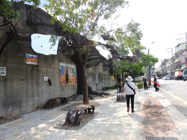 14:14 抵民富路三段與豐興街交叉口看地景藝術作品編號5《榕樹下、陂塘邊、大圳流水好客庄》