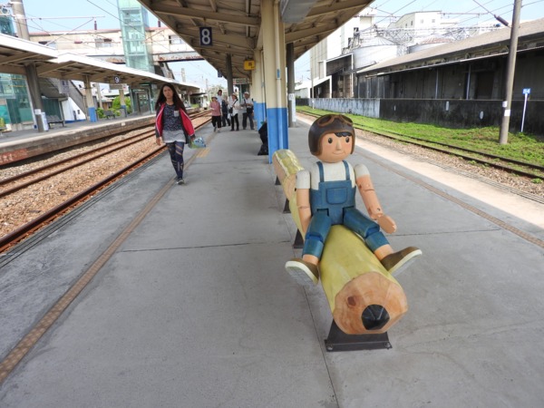 14:31 下車站月台看地景藝術作品編號1《富岡幸福筆記》