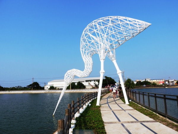 作品選用與稻田、埤塘共生的白鷺鷥作為創作原型,使用不鏽鋼圓管為主體構件串組成為一件高達近九米的大型藝術裝置。外觀仿效白鷺鷥以優雅漫步、低頭覓食的生動外型,鏤空的造型設計能讓作品保有空間的穿透性與視覺的輕盈感,並利用富岡地區獨特的陂塘環境以水借景,讓作品自然融入在田園的地景之中。