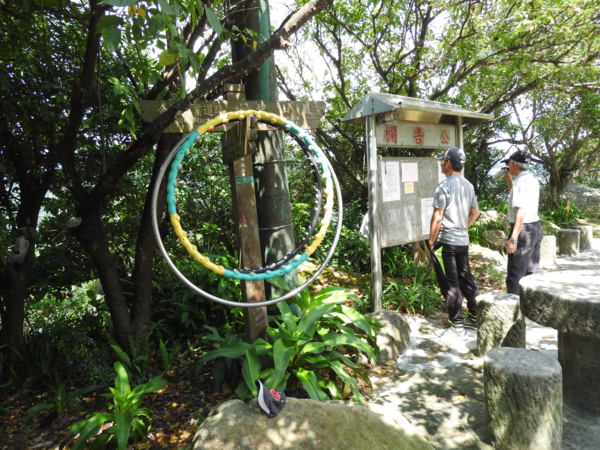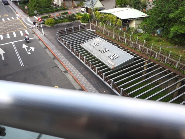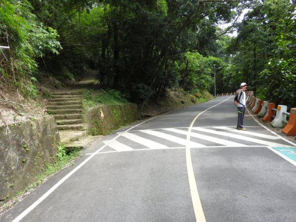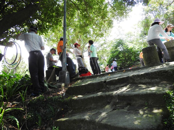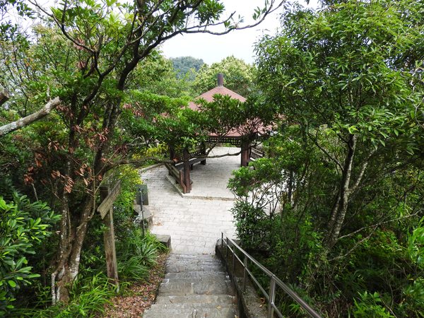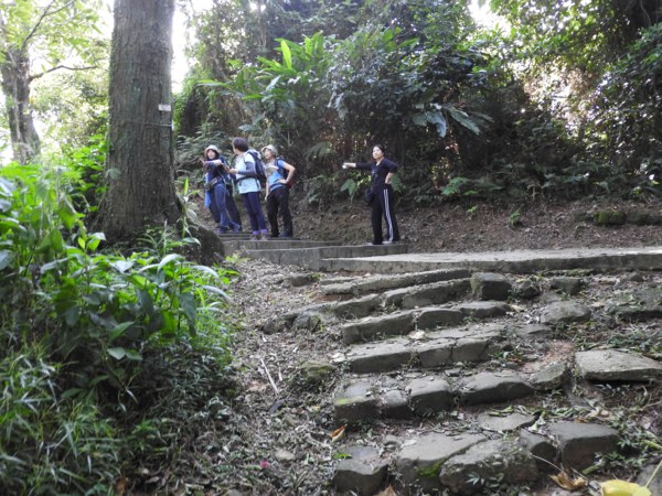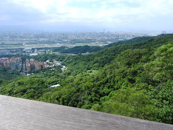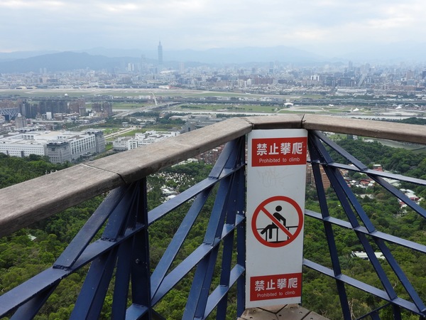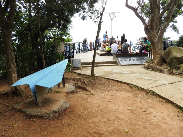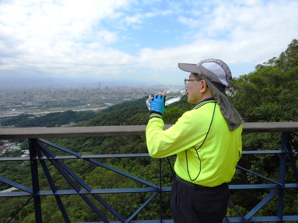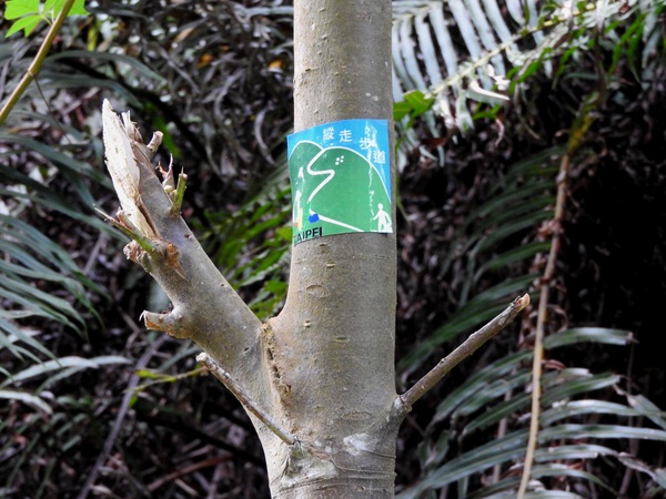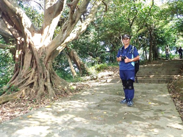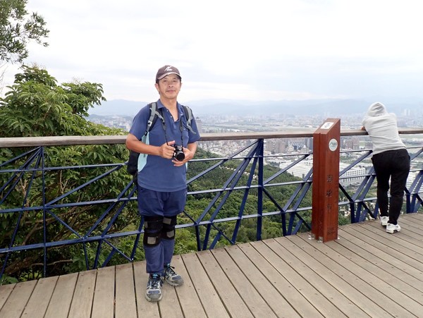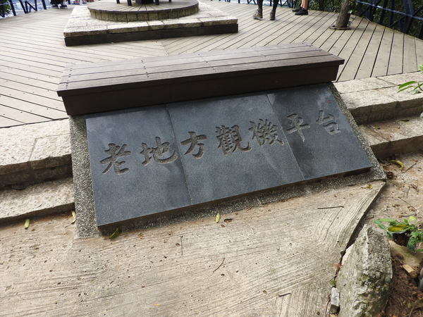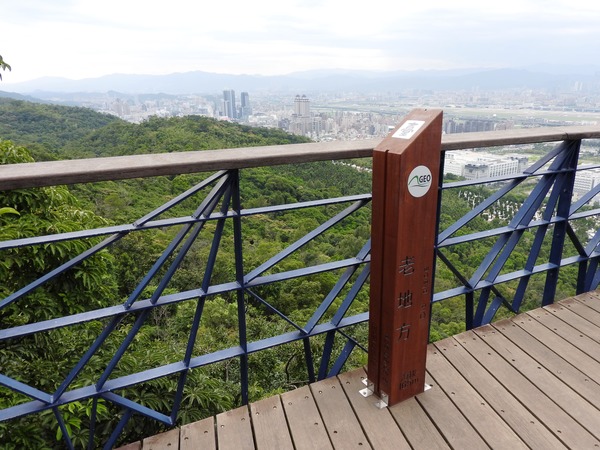 09:03 劍潭山步道八美老地方觀機平台(「臺北步道大縱走一生一次的壯遊趣」北區稜線大縱走「臺」字拓印柱位於老地方觀機平台上),海拔165公尺