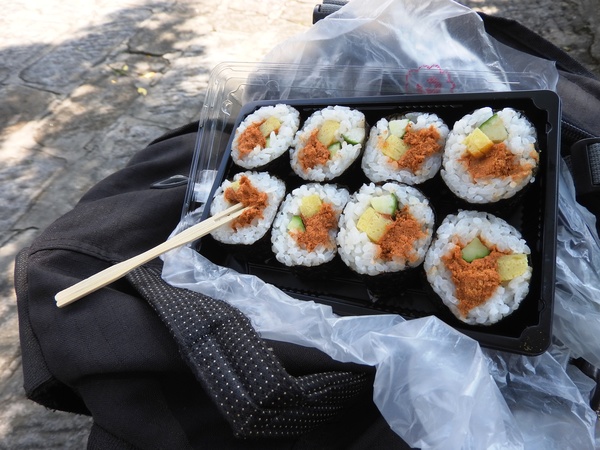 08:01 捷運劍潭站休息整裝,買壽司當午餐