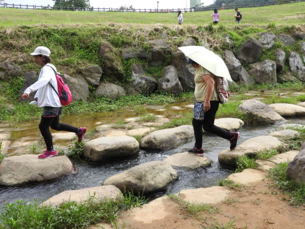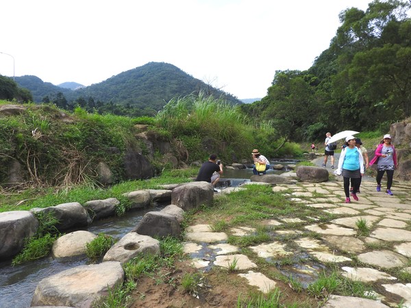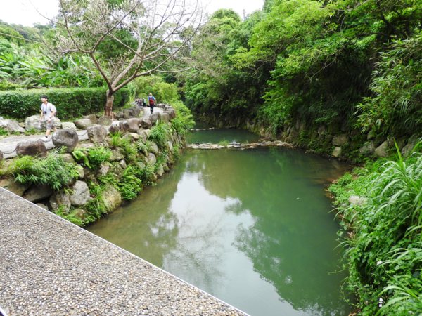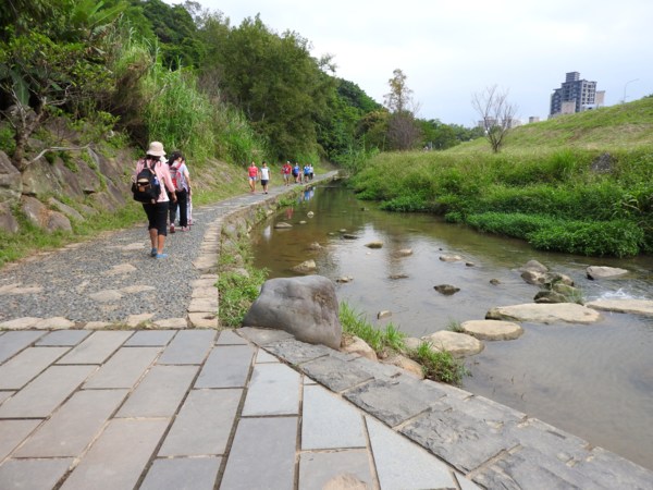 14:57 大溝溪親水公園(「臺北步道大縱走一生一次的壯遊趣」北區稜線大縱走「南」字拓印柱位於大溝溪親水公園入口廣場邊),海拔25公尺
