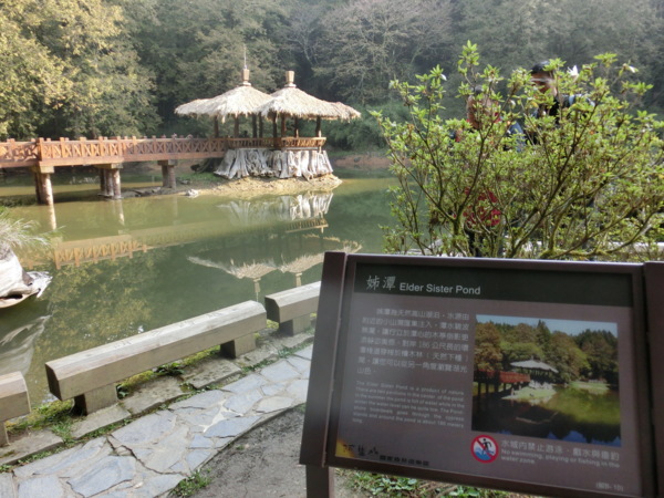 妹潭略呈圓形,佔地20坪,右側的紅檜林,係1930年日本人以天然下種方式更新而成。是目前阿里山國家森林遊樂區內最密集的檜木群;姊潭較大,呈長方形,佔地160坪潭中以兩座檜木為基座,建蓋兩相思亭,有木橋連接岸邊。兩潭相距不到50公尺,潭水清澈碧綠、平靜無波,可循著環潭步道遍覽全景。
