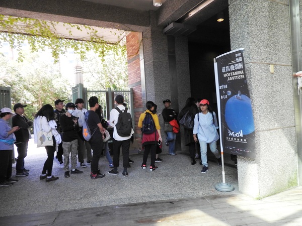 北藝大藝文生態館門口大批人潮排隊參加關渡動畫節活動