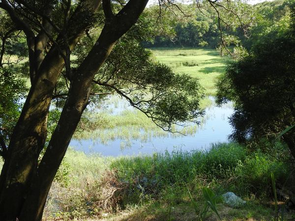 13:57 走進停車場旁蔓草叢生的環湖小徑,看仙掘池