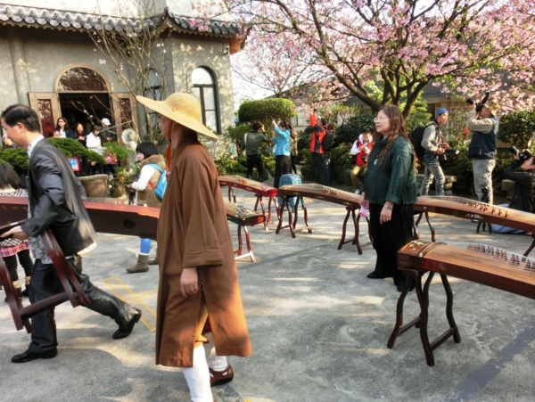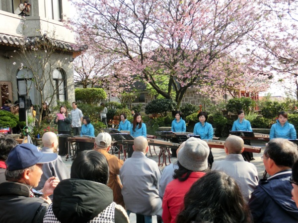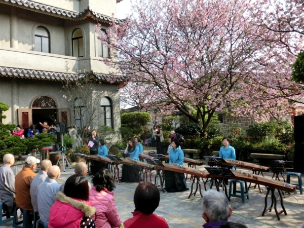 東方寺廟埕正舉行2014櫻花祭箏樂饗宴,由瑜林箏樂團演出