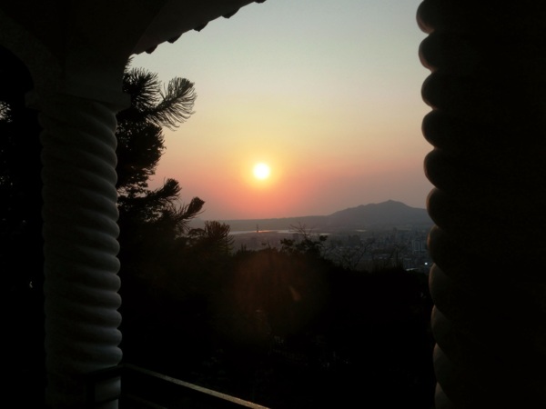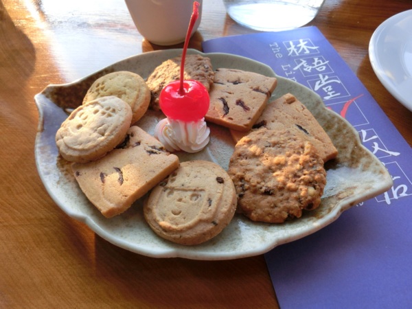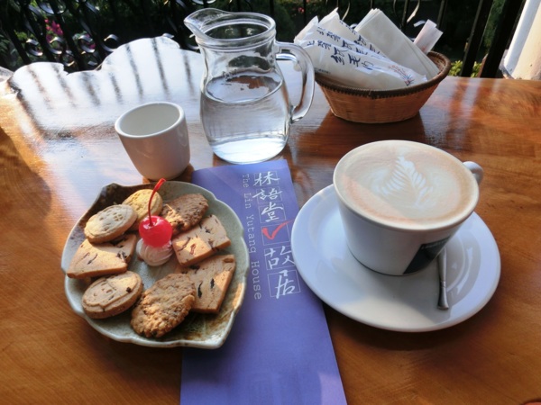 16:59 拖著病腳,走路抵仰德大道林語堂故居喝下午茶(手工餅乾+榛果拿鐵含服務費275元)、看關渡夕陽
