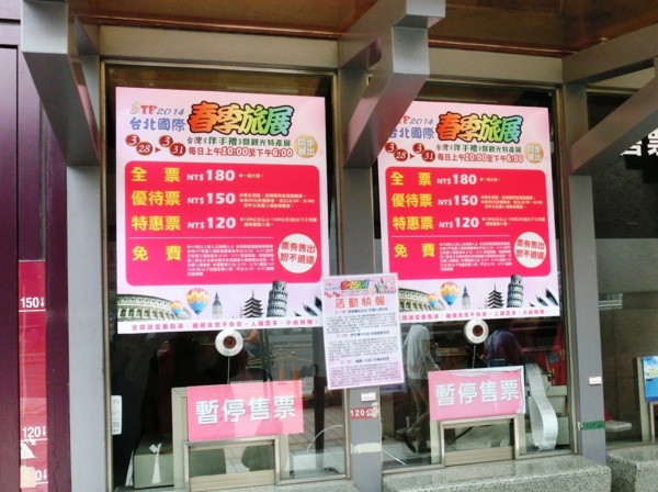 入場票價 – 全票180 / 優待票150 / 特惠票120 / 預售票120 / 免費(同業)