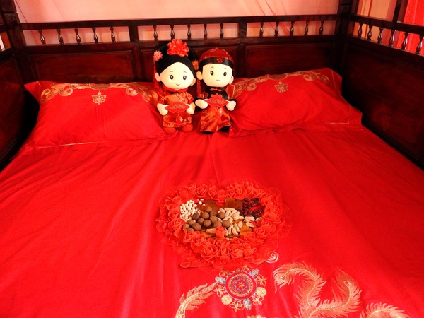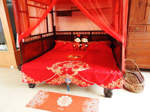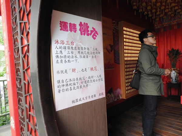 月老殿內設置轉運桃花,以桃花木沾聖水點在頭頂、兩肩,稱沐浴三台
